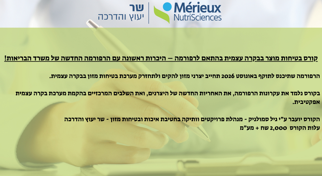 קורס מערכות בטיחות מזון בבקרה עצמית בהתאם לרפורמה - 16/4