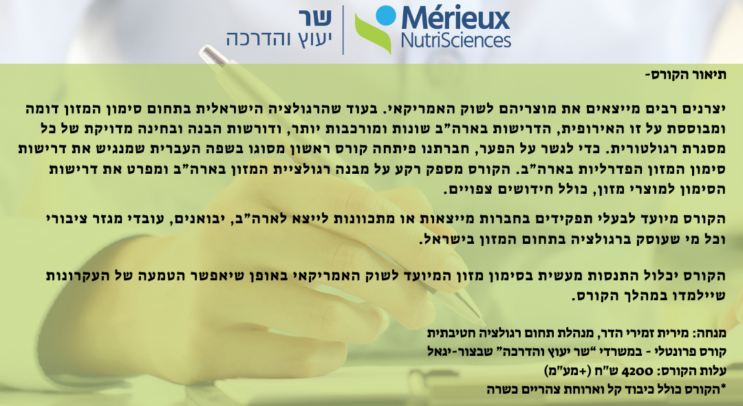| עלות הקורס - 4,200 ש"ח + מע"מ